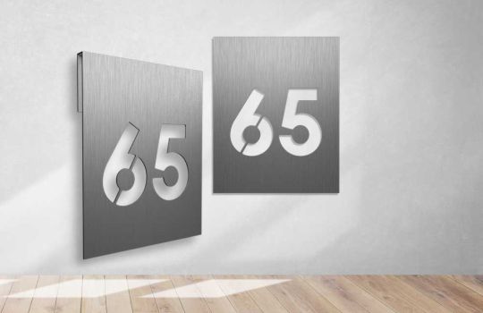 Namų, gatvių, butų, skirtingų dydžių, medžiagų, spalvų ir net dizaino lentelės.